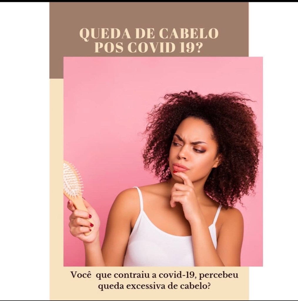 ・・・ Um estudo recente do CDC [Centro de Controle e Prevenção de Doenças] identificou 17 sintomas persistentes da Covid-19, e a queda de cabelo tem sido relatada com frequência. De acordo com dermatologistas e tricologistas, pacientes notaram queda capilar expressiva durante a pandemia. Além do impacto causado pelo coronavírus no metabolismo, essa condição está relacionada ao estresse e a gravidade dos sintomas da Covid-19 determina como e quando o cabelo pode cair. É uma queda abrupta que chamamos de eflúvio telógeno. A pessoa tem a Covid e, geralmente, depois de um mês já começa a ter a queda de cabelo acentuada. Isso depende do grau que a pessoa teve o Covid, se for um nível muito inflamatório , com muita liberação de citocinas inflamatórias, muito estresse e liberação de carga viral, essa queda de cabelo pode começar às vezes com trinta dias, ou pode começar com dois a três meses . (Dermatologista Kátia Takahashi )